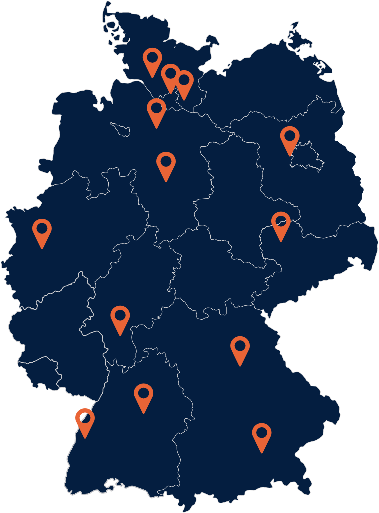 Mit modernen Logistikzentren in ganz Deutschland befinden wir uns auch in deiner Nähe. Wähle aus unserem Netzwerk den Standort, der für dich am besten geeignet ist. Plötzliche Umsatzpeaks? Auch im Hochbetrieb und zu Stoßzeiten sorgen wir für ein zuverlässiges Next-Day-Fulfillment.